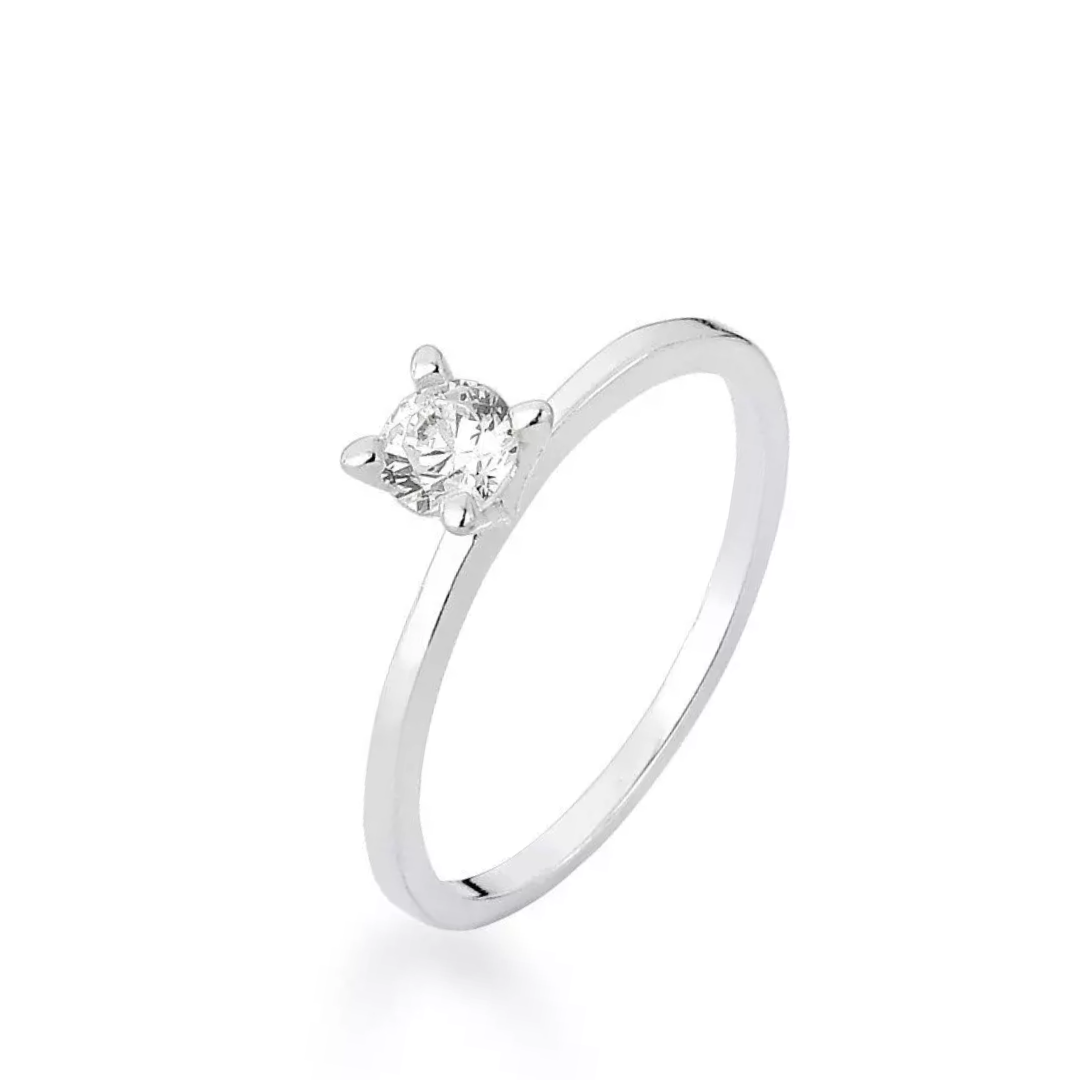 Anel Solitário - Prata 925